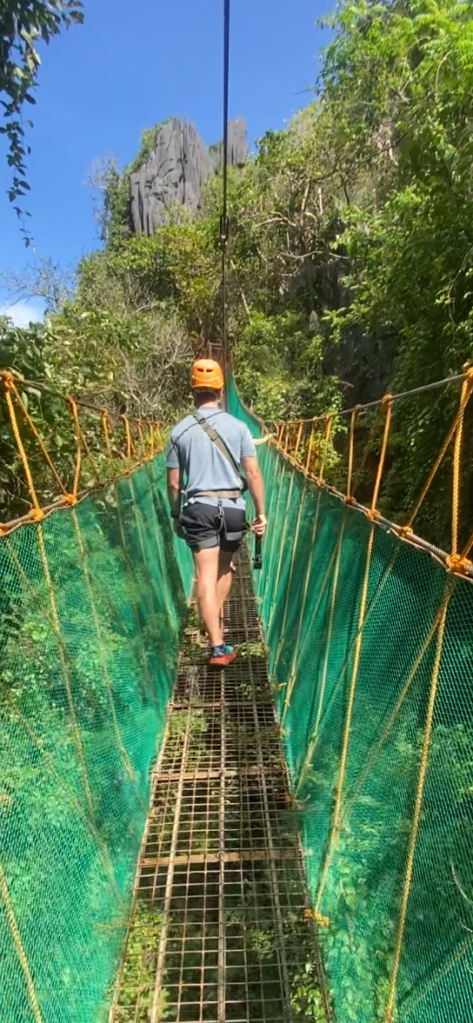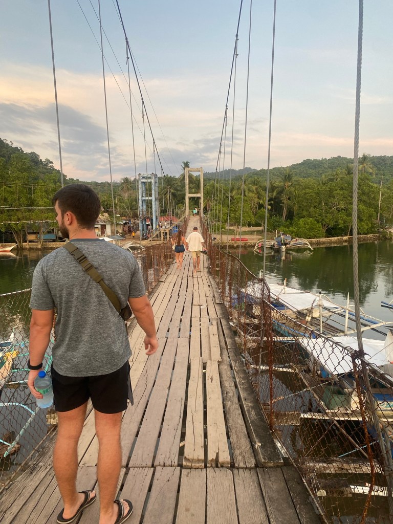 We were unceremoniously dumped in the tiny town of Bucana, where our adventure began with a brisk 10-minute stroll—just enough time to reconsider our life choices. Our first challenge? A ‘hanging bridge’. If you found the canopy walk in El Nido to be nail-biting, then let’s just say that the journey to this accommodation might not be your cup of tea!