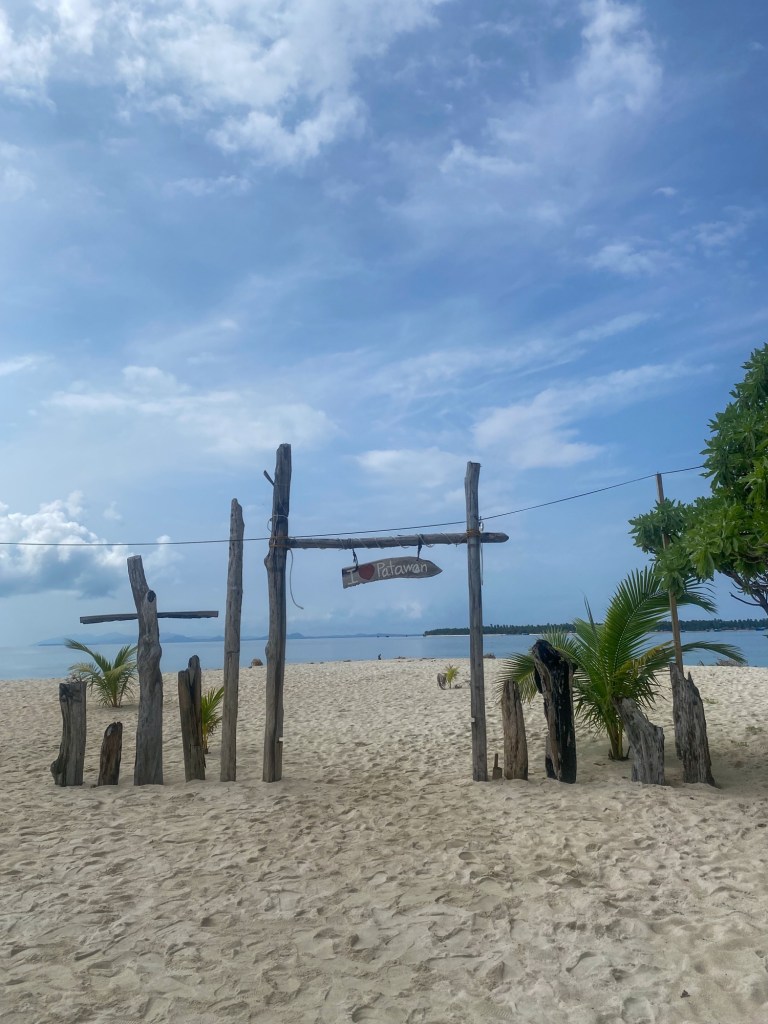 We stopped off at Patawan Island – white beach, blue sea, one bar, a volleyball net, and a toilet. We used our time here to get to grips with our new drone, and admired the island from above!