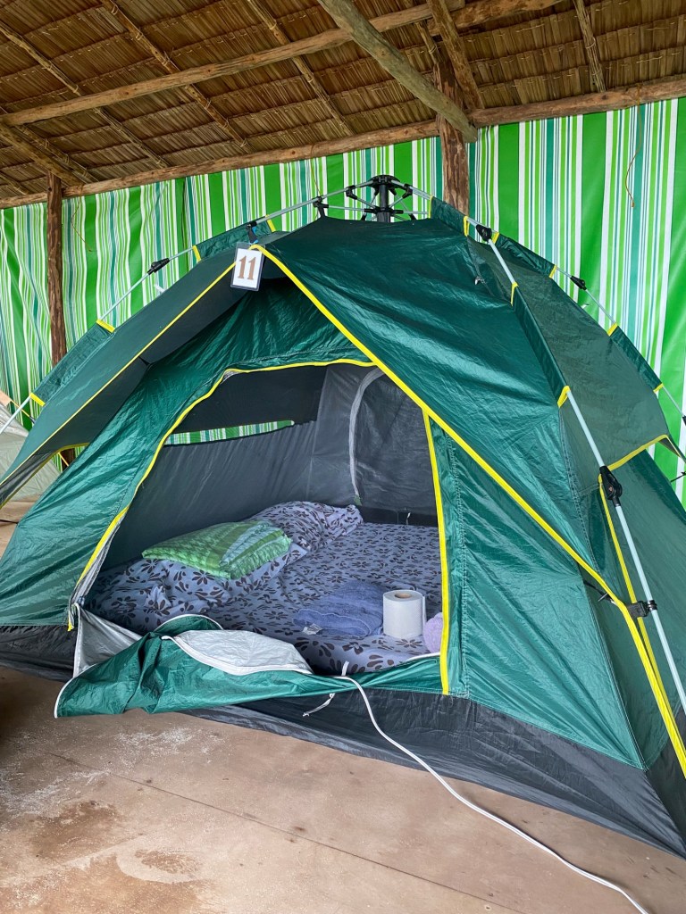 We fell asleep to the sound of the ocean and a breeze drifting through the tent (which we really needed), already feeling the pull of island life. And if you’re worried about trouble sleeping in the sweltering tent, the long travel day (and the litre red horse we bought from the shop while trying to be social) really helped!