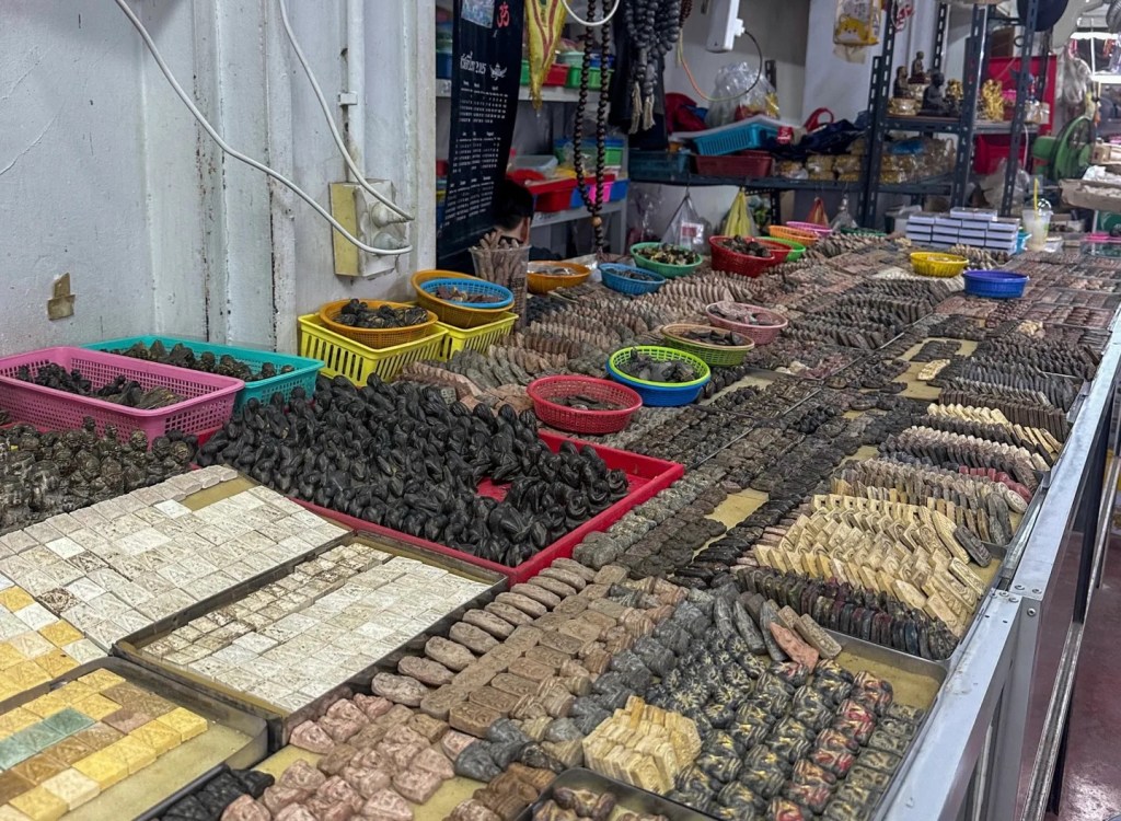 With one person still feeling ropey, I set off solo — using a water taxi and metro because paying 273 baht for a Grab felt daft. That combo got me to Chatuchak Weekend Market dead cheap, and I wandered endless stalls — elephant pants, souvenirs, mystery snacks — before rescuing the day with mango sticky rice. Cheap, sweet, and exactly the pick-me-up needed.