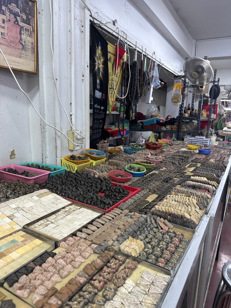 A bit off the beaten track now with the Amulet Market. Similarly to Chatuchak, there are rows and rows of stalls down narrow passageways. There didn’t seem to be much English spoken here, but are tons of amulets with superstitious powers. The same amulet ranging from 10baht to 1000baht based on how much good luck it will bring you. This also comes with some great people watching- a lot of men with magnifying glasses getting a right good luck at each of these amulets. And I mean, they aren’t wrong to. We bought one each, and Will’s followed with a string of bad luck, it had to be thrown. Is that bad luck?
